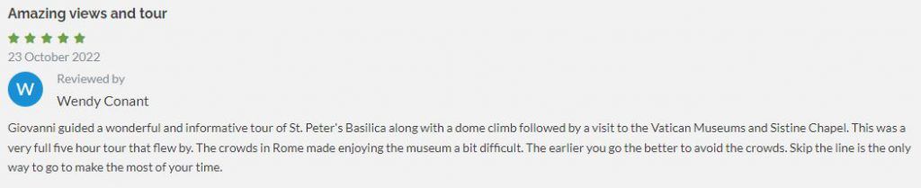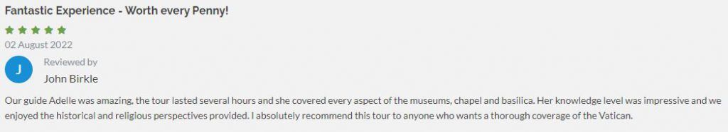 With a lineage like that, it’s no wonder why you need a tour of St. Peter’s Basilica to fully appreciate the centuries of work that went into designing this incredible building. But don’t take our word for it. See what our customers have to say about our St. Peter’s Basilica tours!