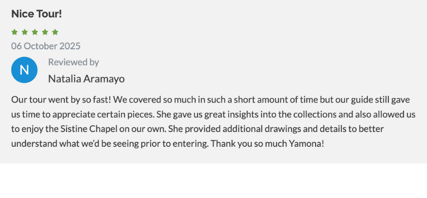 When booking a Rome tour, you’ll usually choose between a small group or a private tour. Small groups are perfect for travelers who want a balance of value and personal attention—our groups are capped at 25 people (often fewer), so you can actually hear your guide and ask questions without feeling lost in the crowd.