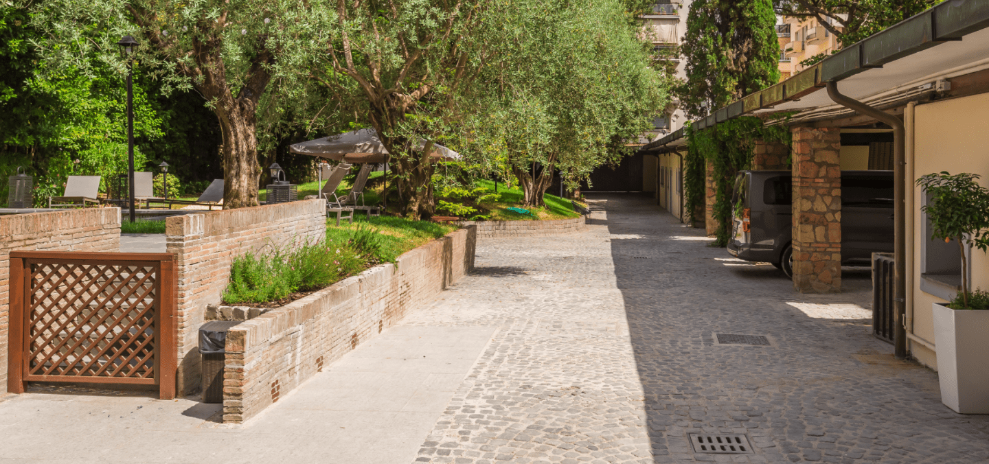 This hotel is a particularly “Family Friendly” choice for Rome because many if not all rooms open up directly to an out-door space. It is also at the end of a road with almost no traffic. Finally, you are in Trastevere which is largely traffic-free.