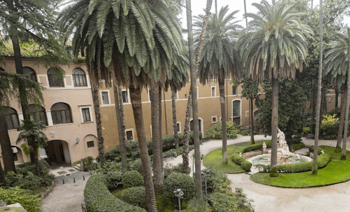 It then became the Venetian Embassy to Rome. Yes, Venice had an embassy in Rome. Italy was not a unified country from the time of the fall of the Roman Empire in the 5th century A.D. up until the late 19th century. Rome was controlled by the Papal State and sometimes the kingdoms got along and other times they were at war. You can visit the inside of the palace—the interior courtyard is very peaceful and you won’t find any crowds.
